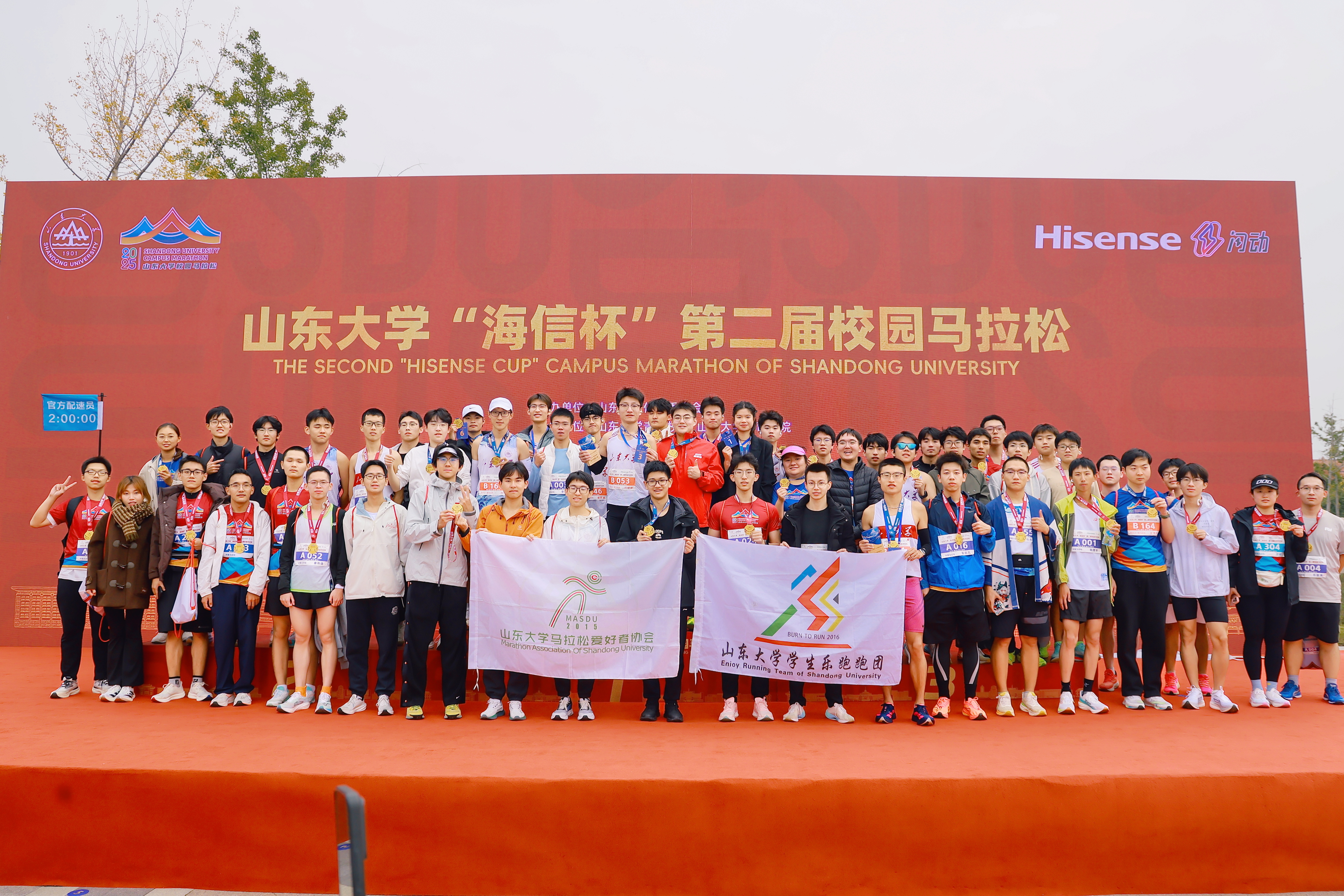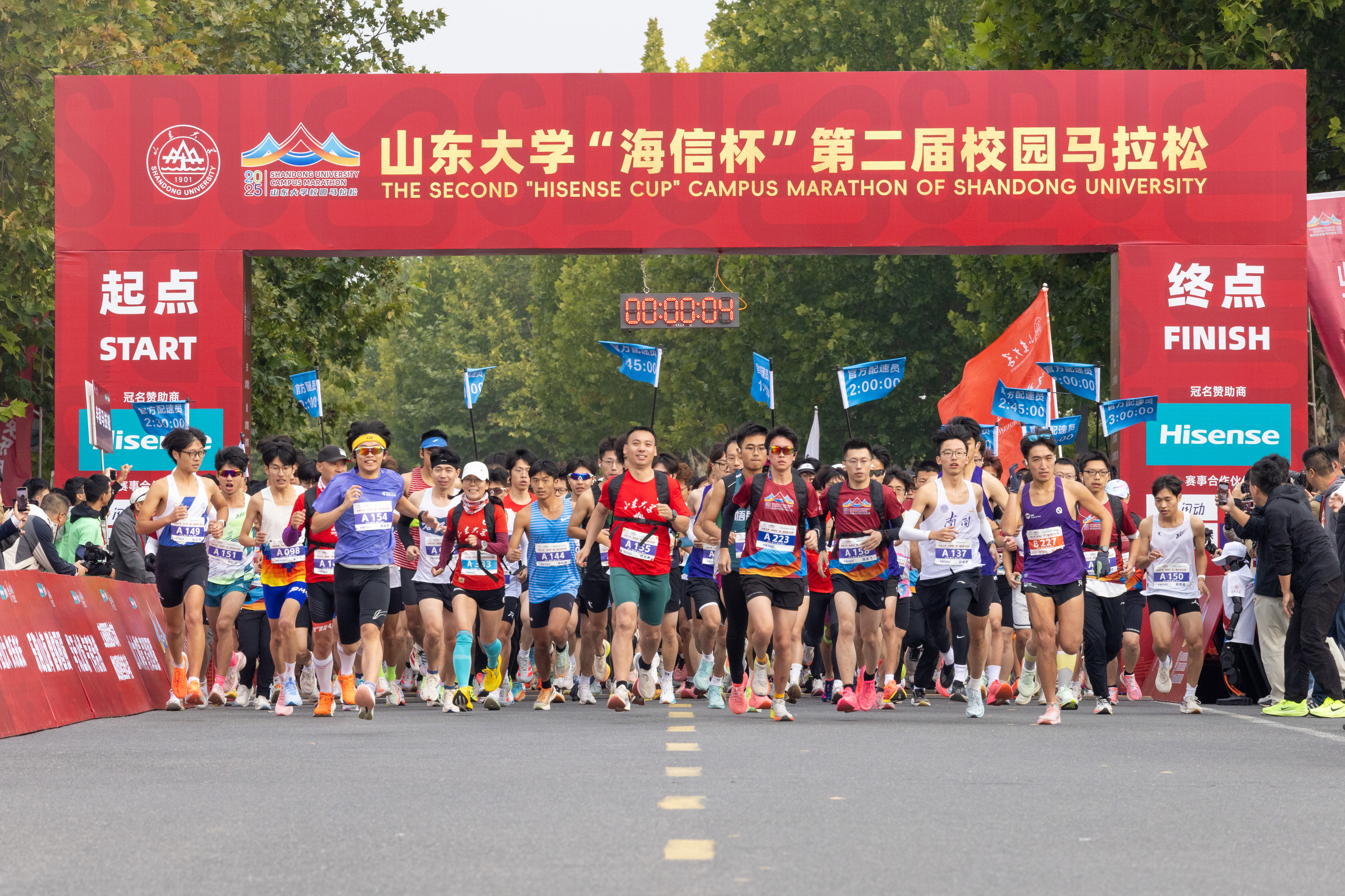 10月25日,山东大学“海信杯”第二届校园马拉松在青岛校区活力开跑,校长李术才出席开幕式并致辞。赛事设定半程马拉松、四分之一程马拉松、健康跑三个项目,并首次在健康跑中增设教工亲子跑,共吸引一校三地师生、校友等2500余人热情参与。“山大校园马拉松”的品牌影响力持续提升,“人人爱运动 无处不体育”的体育文化愈发浓厚,“学在山大 快乐成长”的育人特色持续凸显。