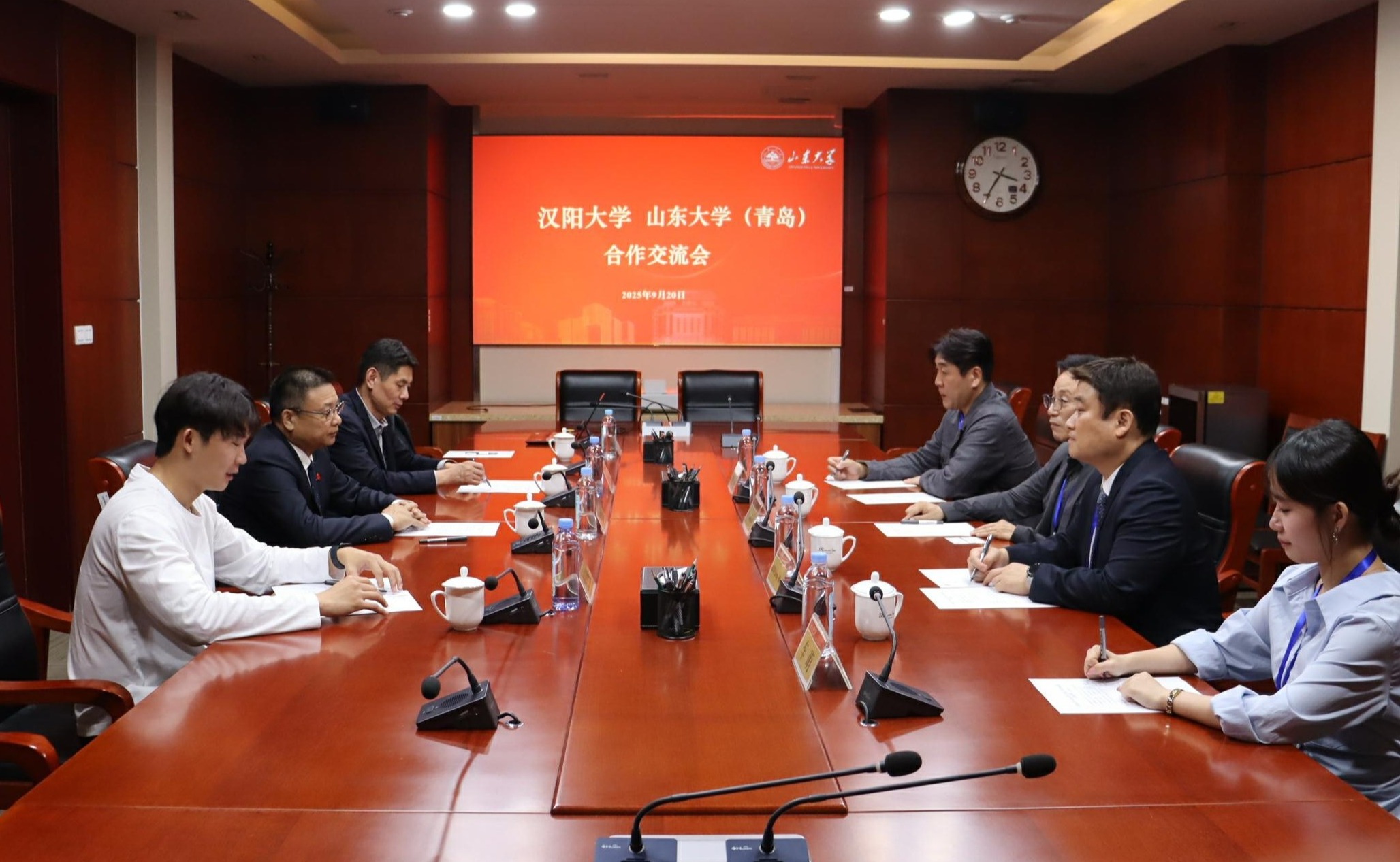 会议期间,韩国汉阳大学艺术体育学院院长李盛鲁一行到青岛校区座谈交流。双方围绕合作办学、人才联合培养等内容达成多项合作意向,进一步拓展了国际交流网络,为提升体育人才培养质量与学术创新水平注入了新动能。