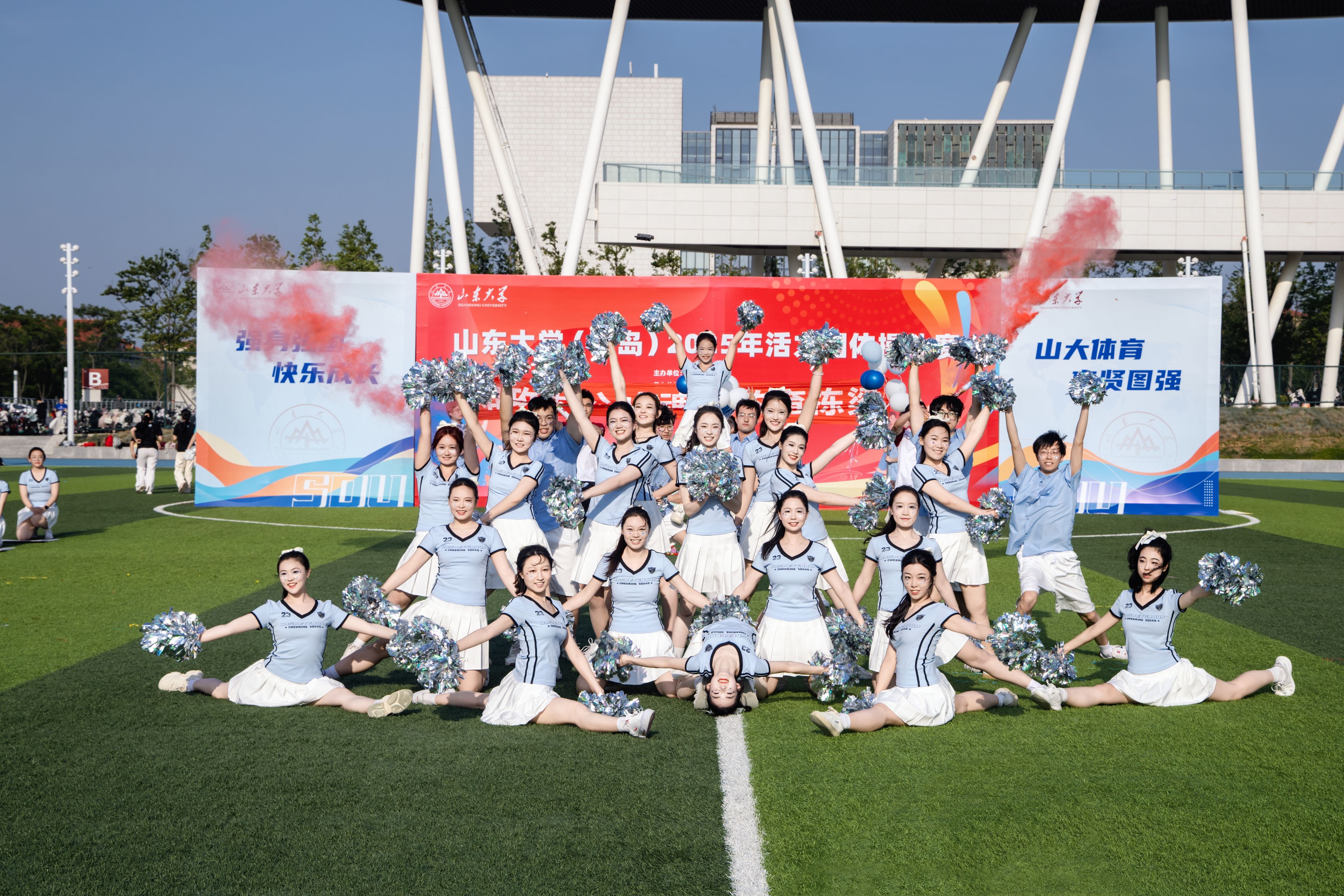 5月,山东大学(青岛)活力团体操比赛在校区田径场圆满举行,共有16支学院代表队(研究生组9支、本科生组7支)同场竞技。各参赛队伍精心编排,动作整齐且富有创意,用青春热血诠释了“敢闯敢创”的山大气魄,展现了“学在山大,快乐成长”的蓬勃朝气。作为校区连续培育五届的特色品牌活动,赛事有力地推动了体育与美育的深度融合,是校区积极践行“五育并举”、着力打造“一区一品”发展局面的扎实实践。