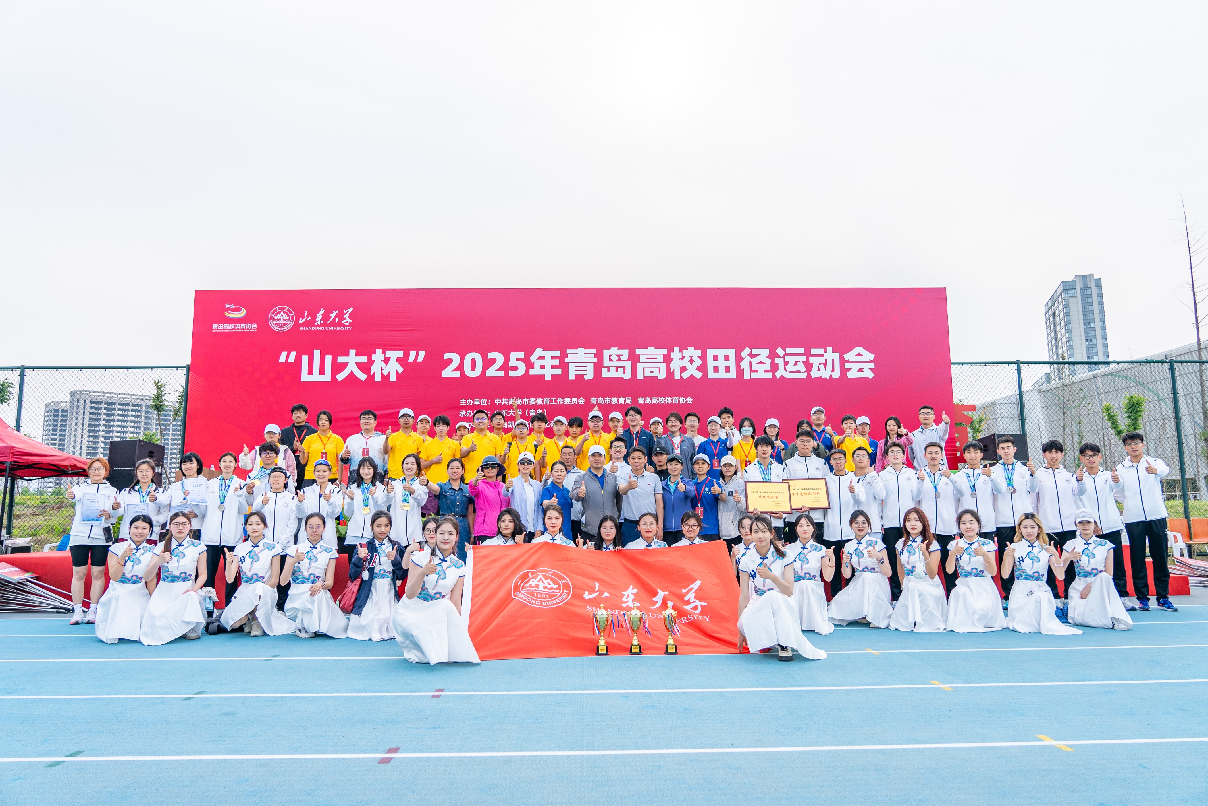 5月29日至30日,由中共青岛市委教育工作委员会、青岛市教育局、青岛高校体育协会主办,山东大学青岛校区承办的“山大杯”2025年青岛高校田径运动会在我校顺利举行。这是学校自2016年恢复青岛办学以来首次承办该项市级综合性赛事,共有来自22所驻青高校的近500名运动员参赛。我校代表队荣获女子甲组总分第一名,校区赛事保障全面,获评“特殊贡献奖”。本次比赛充分展现了新时代大学生蓬勃向上的精神风貌,显著提升了校区在青岛高校体育领域的影响力与美誉度。