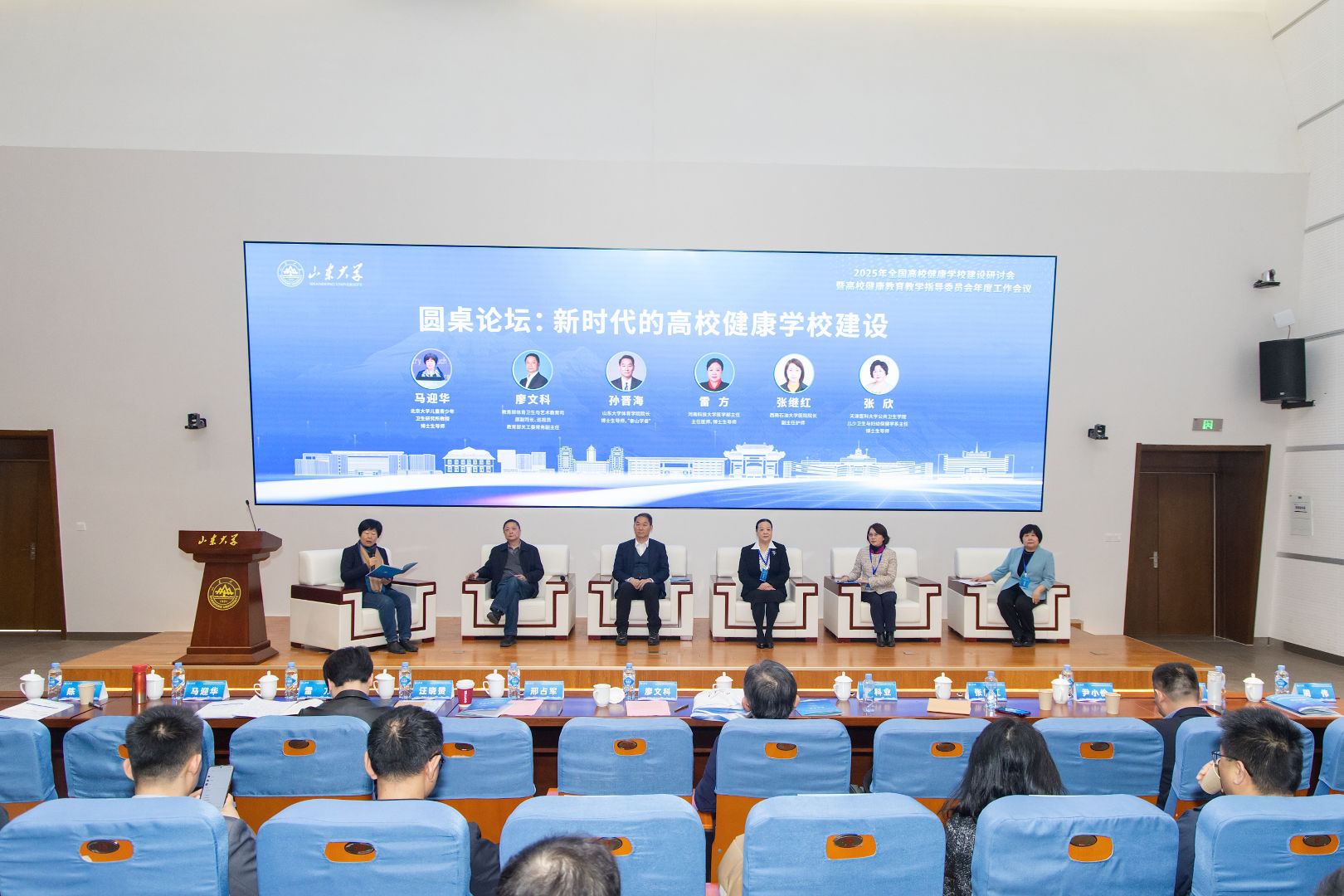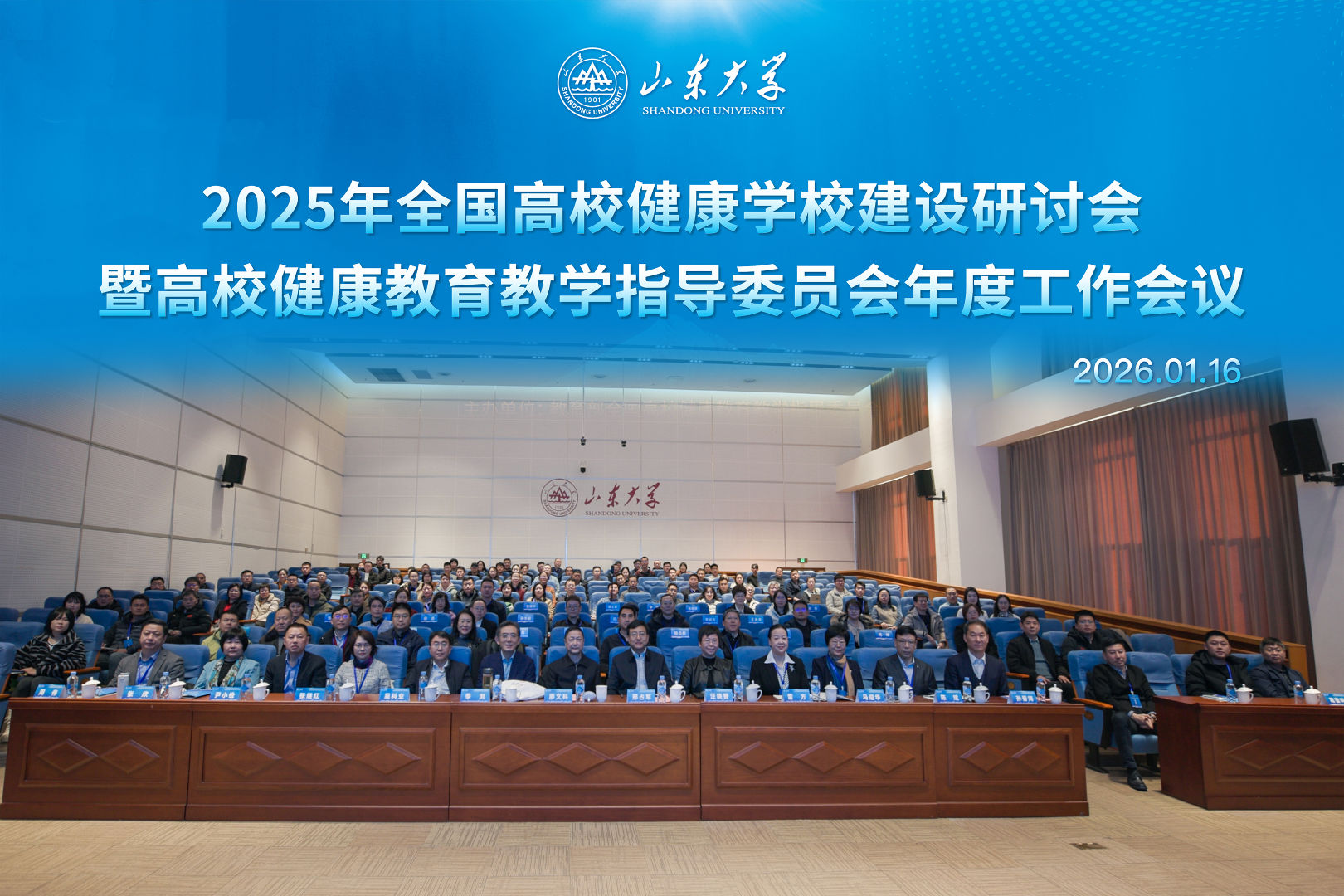 本年度,2025年全国高校健康学校建设研讨会暨高校健康教育教学指导委员会年度工作会议在青岛校区成功召开。教育部体育卫生与艺术教育司原副司长、教育部首届全国高校健康教育教学指导委员会副主任委员廖文科,山东大学校长助理、青岛校区党工委书记邢占军出席开幕式并致辞。会议设立主旨报告、圆桌论坛、分组讨论、集中分享等环节,围绕新时代高校健康学校建设路径展开深入交流,为全国高校健康教育高质量发展凝聚共识、注入智慧。